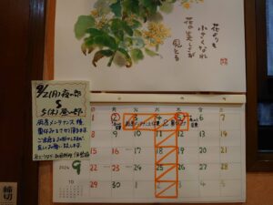 9月の営業カレンダーです。